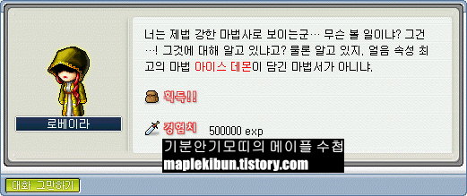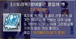 <얼어붙은 얼음의 책> 를 휙득한 아크메이지(썬,콜)은 퀘스트 창에