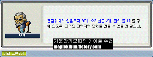 루디브리엄 최하층에 있는 팬텀워치를 잡아 얼음조각 30개와