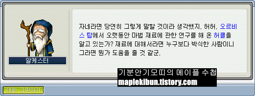 대화를 마치고 오르비스탑의 허클을 찾아갑시다.