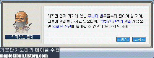 저주 받은 신전에 가서 주니어발록을 잡아 <잊혀진 신전의 열쇠>를 얻고