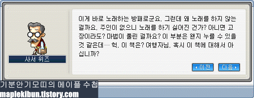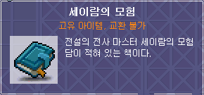대화를 마치면 사서 위즈에게 퀘스트 아이템인 <세이람의 모험>을 받게 됩니다.