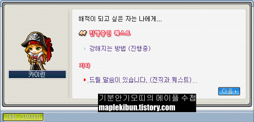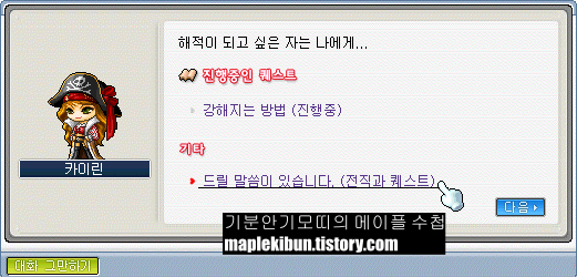 리프레에서 4차 전직을 하여 캡틴이 된 해적은 퀘스트 창에