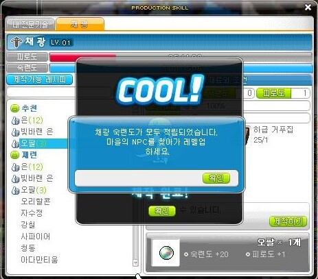 **장비제작 레벨업을 위해서는 은빛광맥을 캐줍니다.