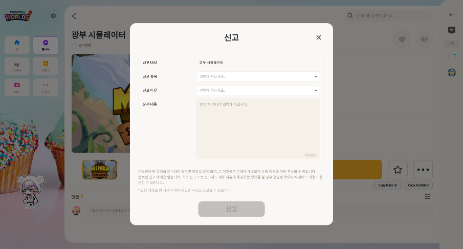 매크로/비매너 유저를 신고할 수 있는 기능도 만들어졌습니다.