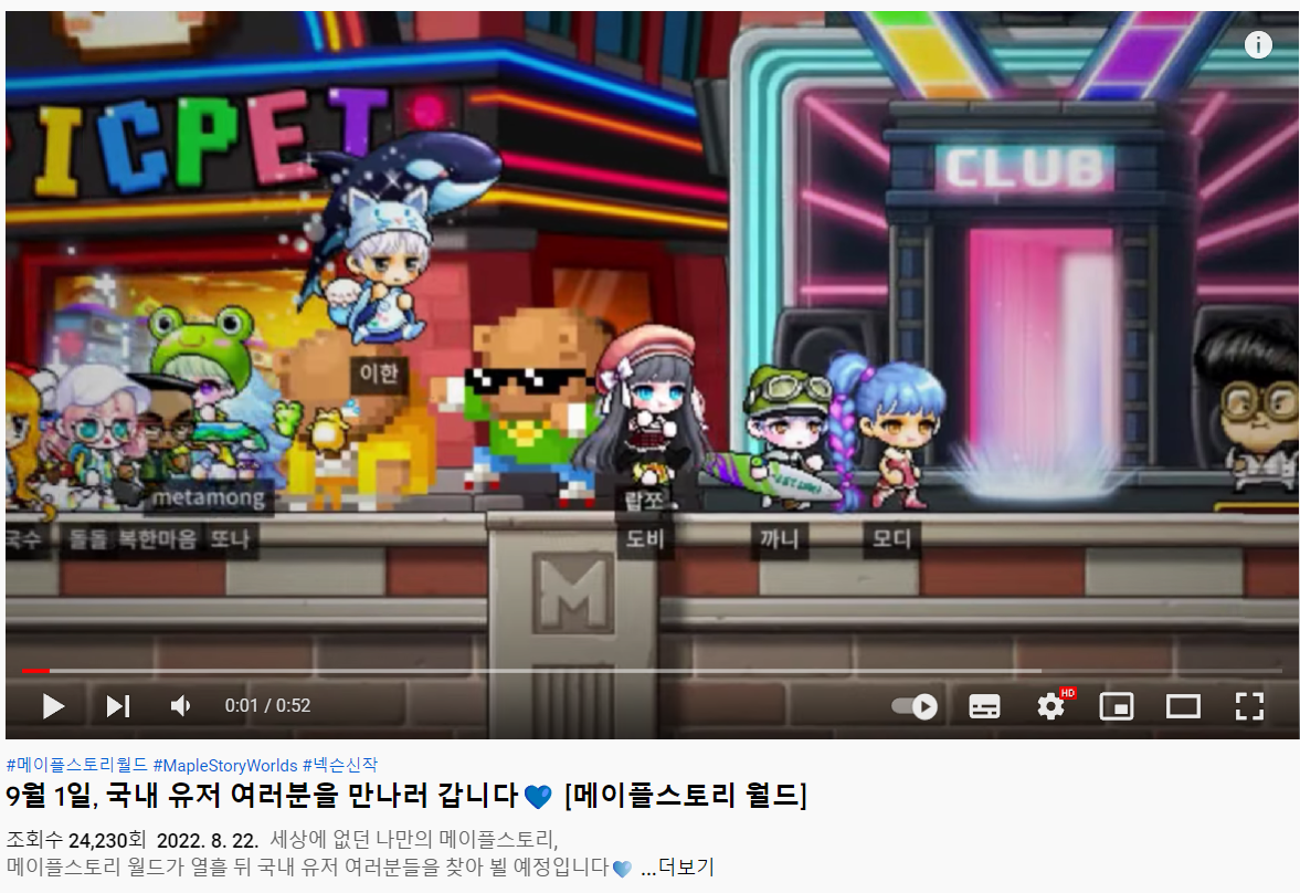 메이플스토리 월드는 9월 1일에 별다른 광고 없이 열렸지만 입소문을 통해서 화제를 모았었습니다.